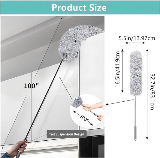 Extendable Feather Duster, Bendable Microfiber Duster with Extra Long Telescopic Extension Pole and Soft Silicone Cap, Washable Duster for Cleaning Roof, High Ceiling Fan, BlindsRegular price £4.00 GBPRegular priceUnit price / per-